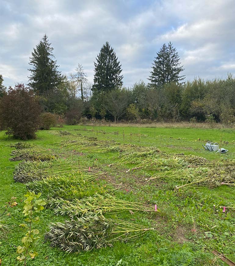 Début octobre signe le début de la récolte des plantes de chanvre. Les pieds sont directement coupés sur place à la main.